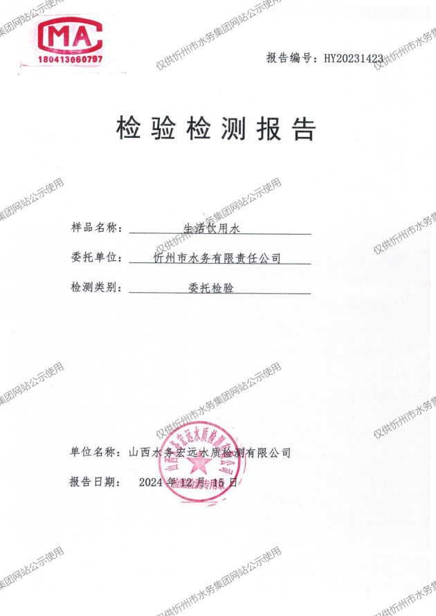 2024年忻州城區(qū)公共供水南水廠、三水廠、云中水廠出廠水97項(xiàng)水質(zhì)全分析