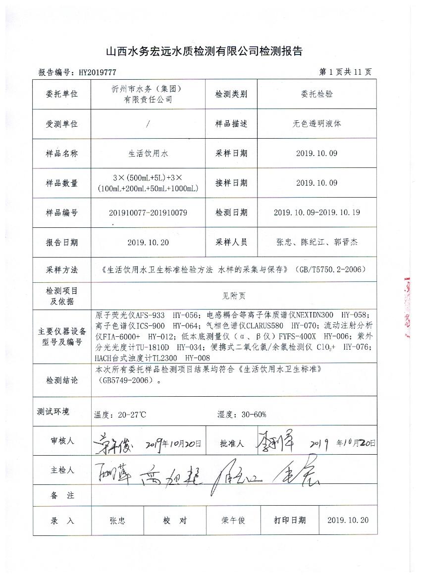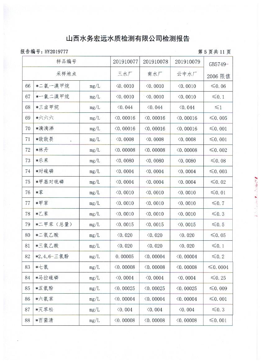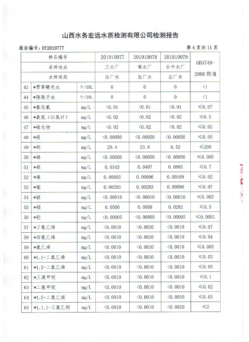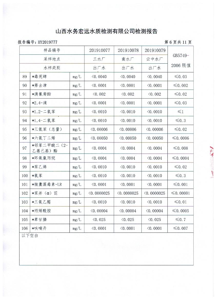 2019年忻州城區(qū)公共供水南水廠、三水廠、云中水廠出廠水106項(xiàng)水質(zhì)全分析
