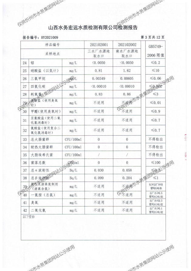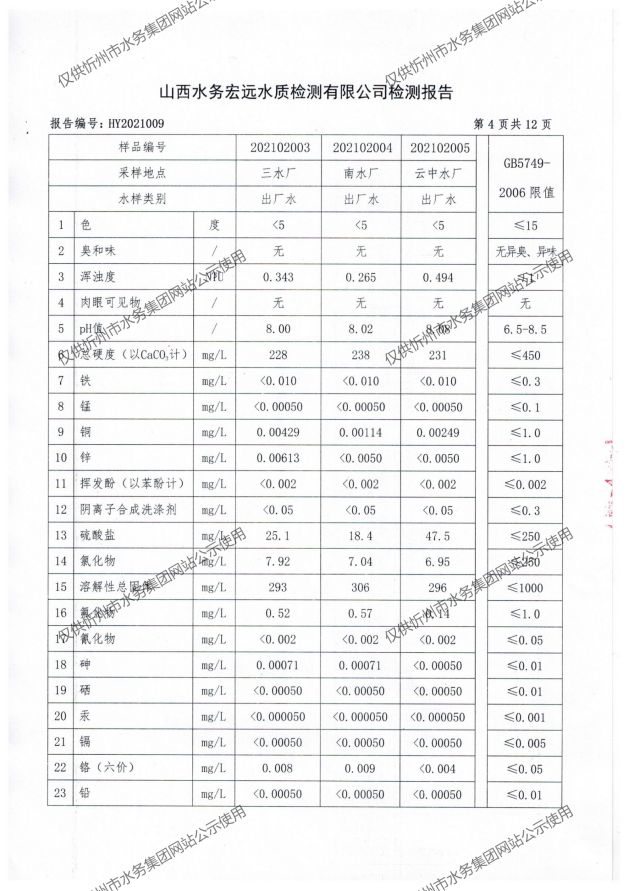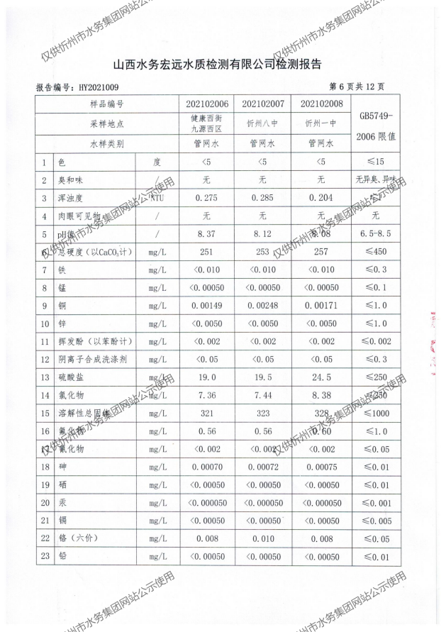 忻州城區(qū)公共供水水源水、出廠(chǎng)水、管網(wǎng)水、管網(wǎng)末梢水2021年2月份水質(zhì)信息公示