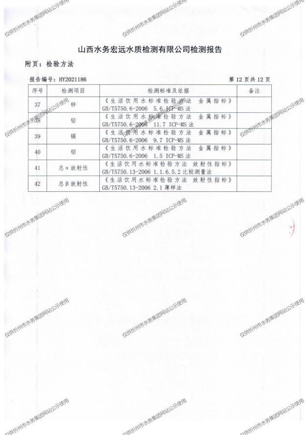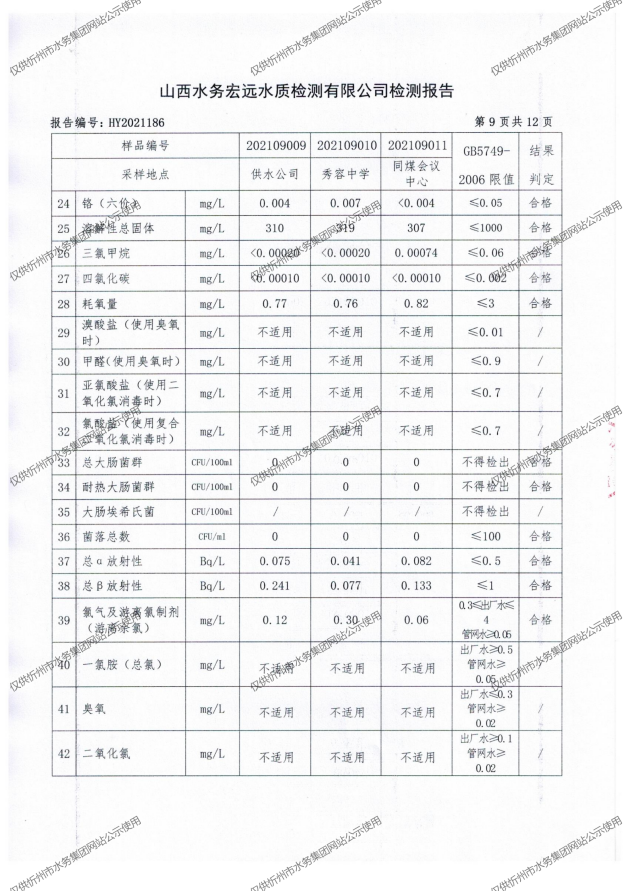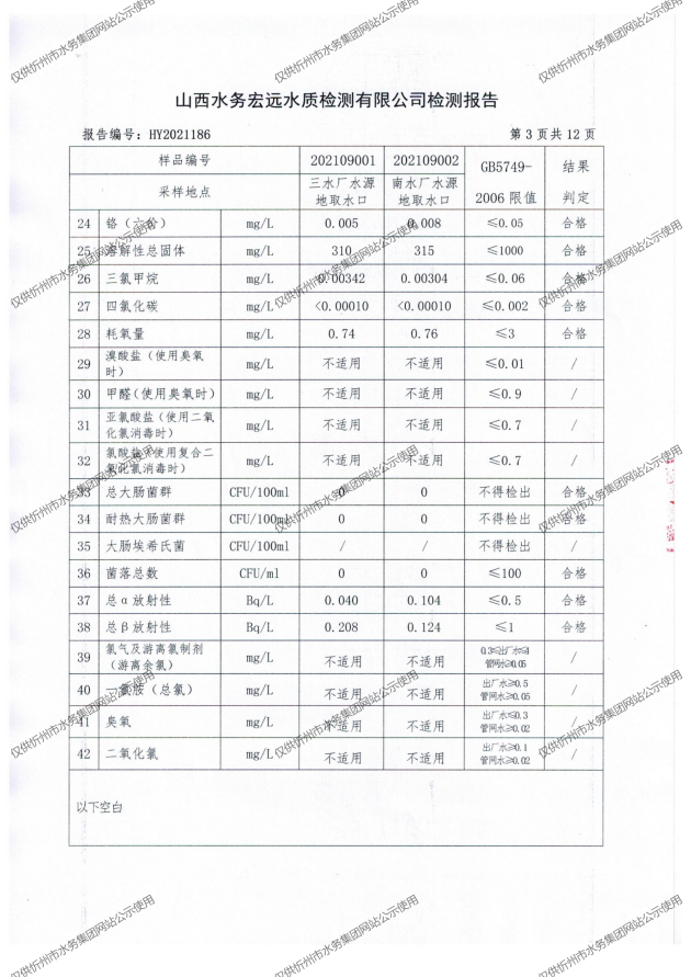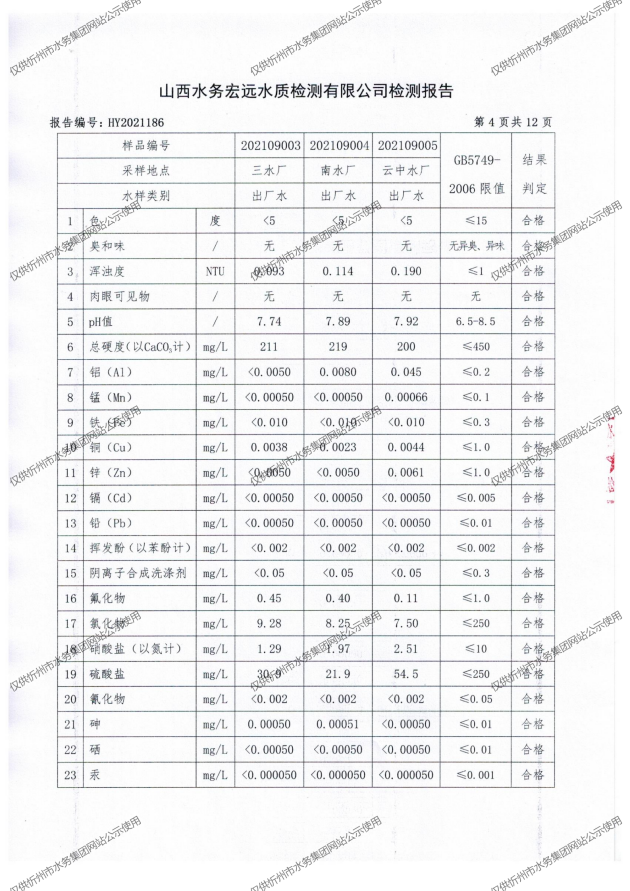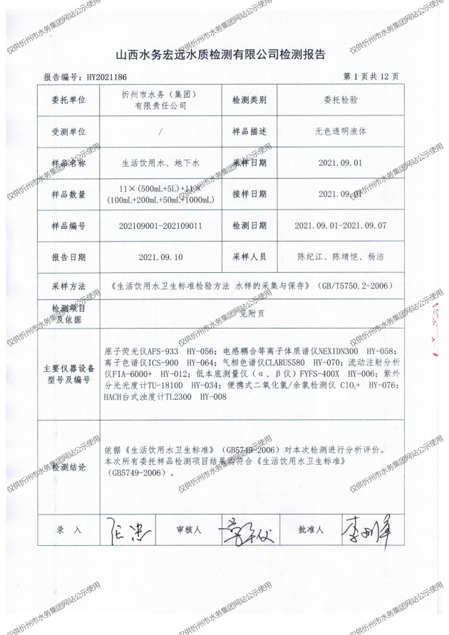 忻州城區(qū)公共供水水源水、出廠水、管網(wǎng)水、管網(wǎng)末梢水2021年9月份水質(zhì)信息公示